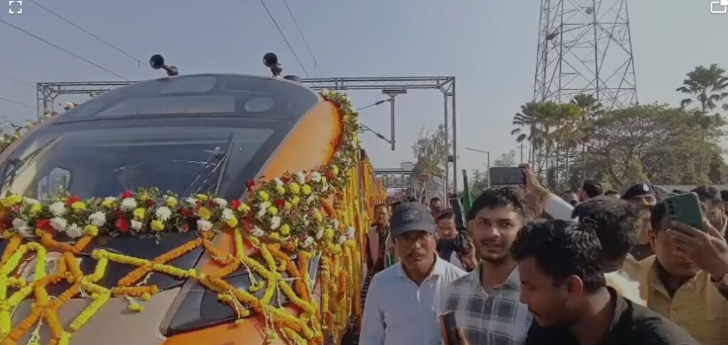 অসমবাসীলৈ উপহাৰ ভাৰত চৰকাৰৰ প্ৰথমটো যাত্ৰা কামাখ্যা ষ্টেচনত সু-সজ্জিত ৰূপত বন্দে ভাৰত এক্সপ্ৰেছ ট্ৰেইন মুকলি হ’ল দেশৰ প্ৰথমখন বন্দে ভাৰত